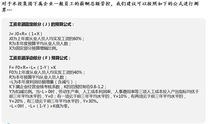 3、制定子公司一般员工薪酬总额管理办法。根据子公司的企业规模、经营业绩情况、同行业市场薪酬水平等因素合理确定一般员工的薪酬总额,既能确保子公司薪酬总额总体可控,又能激励各子公司创造良好的经济效益。