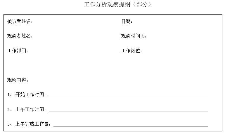 观察法分为参与式观察法和非参与式观察法两大类,所谓参与式观察法,观察者会假定自身是被观察人群中的一员,并履行作为该群体成员应该履行的职责,从被观察人的角度,对相关工作信息进行梳理。而在非参与式观察法中,观察者不参与被观察群体的工作活动,而是作为一个中立者对被观察人进行观察、分析和总结。观察后一般以工作日志的方式进行记录。