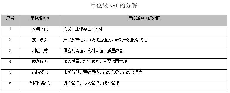 在单位的战略目标清楚的情况下,寻找单位成功的关键要素,确立单位KPI维度。一般来说,单位级的KPI主要包括以下三方面的关键环节: