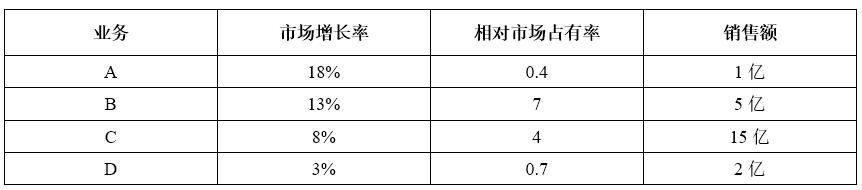(4)D业务线:属于典型的“狗类业务”,传统产品,已经不适应主流市场的需求,仅有少量老年消费者坚持使用,产品价格低,销量少,建议停止生产,将资源投入到A、B、C业务上去。