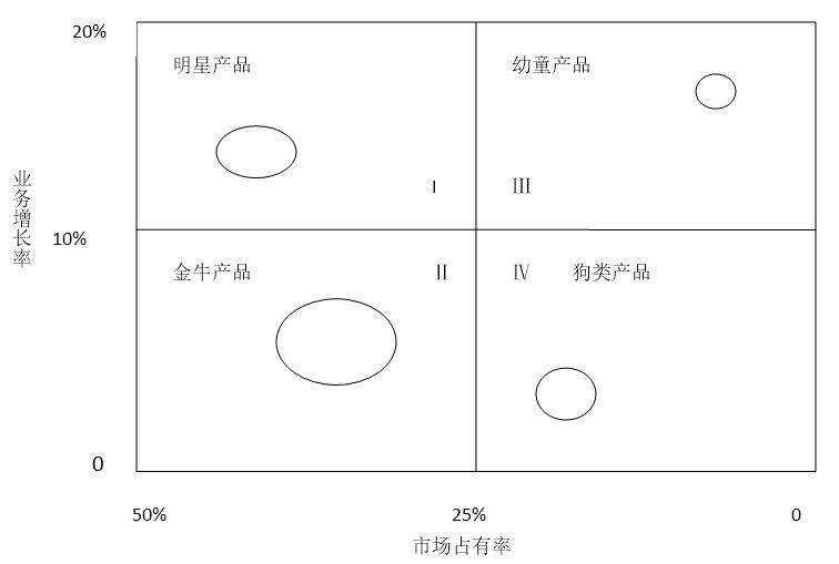 将以上业务划入BCG矩阵,则如下图所示: